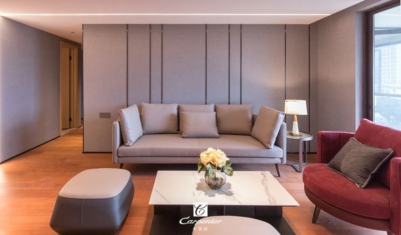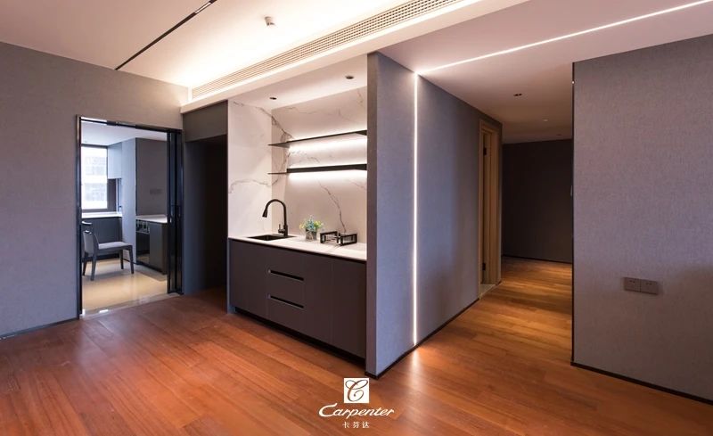 →全屋燈光設計,無主燈設計,線型燈點綴墻面、吊頂,營造柔和、均勻的溫馨氛圍。