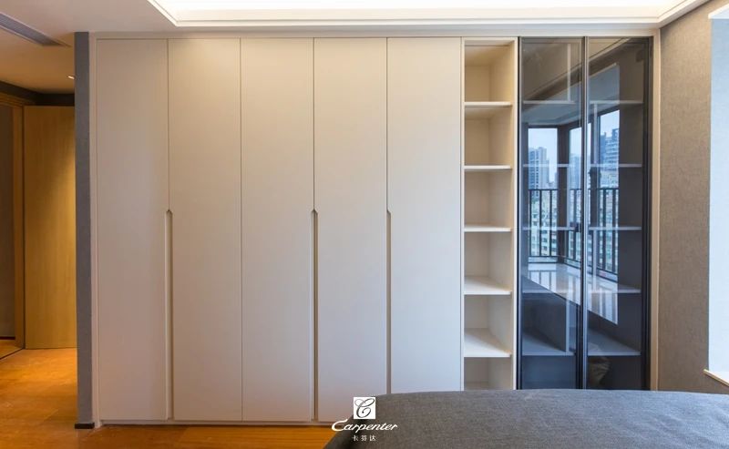 其中隱藏的移門衣柜讓換季衣服的收納更有條理
