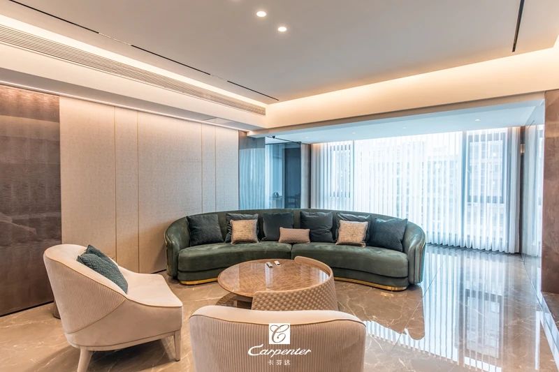 墨綠磨砂皮質(zhì)弧形沙發(fā)跳躍其中